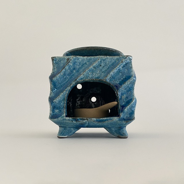 ご発注をいただいてから約2日後発送となります。商品や発送先エリアにより数日延びる場合があります。 サイズ: 約10×10×H11.5㎝ 素材:陶器 やさしい海色の茶香炉(専用茶葉付き) 日本六古窯の一つに数えられ、 1,000年の歴史を持つ常滑焼の茶香炉です。 独特の青い色とかわいいフォルムは テーブルの上で存在感を発揮します。 上部のお皿にティースプーン一杯の茶葉をのせ、 アロマ用キャンドルで燻すと ほのかな茶葉の良い香りが広がります。 茶葉は少量の専用茶葉パックを お付けしておりますが、 ご家庭にある普通の茶葉や、 古くなった茶葉でも楽しんでいただけます。 <使用上のご注意> ●火を使用するためお子様の手の届かないところや ペットが接触しない場所で使用してください。 ●油・ガス・カーテンなど燃える物の近くで使用しないでください。 ●不安定な場所・風の当たる場所での使用は避けてください。 ●火が小さく金属のカップに収まった高さ2cm以内の アロマ用キャンドル以外は使用しないでください。 ●キャンドルは金属に入ったままの状態で使用してください。 外して使用されると非常に危険です。 ●茶葉の交換は、火を消し本体が冷えてからにしてください。 ※商品には個体差があるため、色や形状、絵柄、デザインのばらつきやムラがあります。非常に細かなキズやくすみ、黒点、針ほどの小さい穴であるピンホールがある場合があります。また、色味や細かい部分は写真と全く同じではありません。予めご了承ください。※返品・返金は、欠損品でない限り、お断りしております。予めご了承ください。