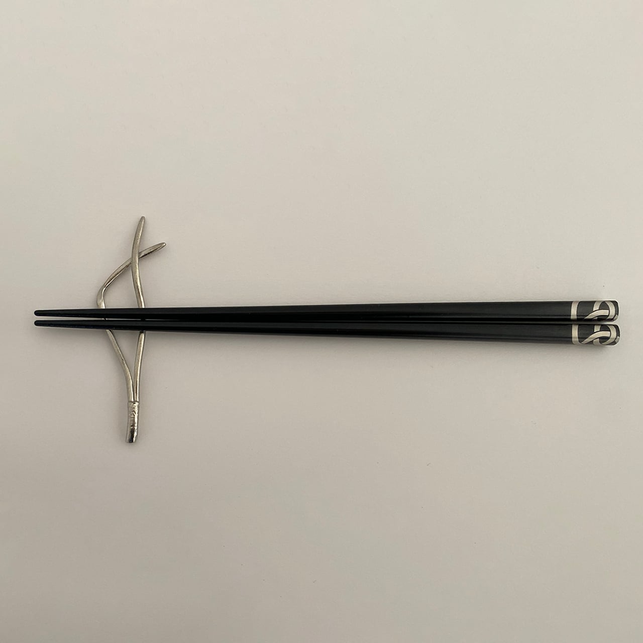 真塗り箸 《結び》 黒にプラチナ
